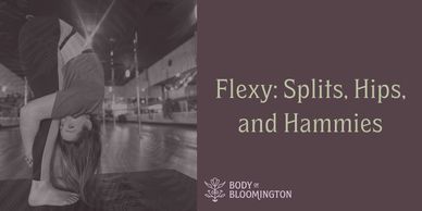 Flexy: Splits, Hips, and Hammies is an all-levels flexibility class focusing on hips, hamstrings, quads, calves, inner thighs, and pelvic tilt. It is suitable for beginners as well as those working on their splits or contortion journeys.